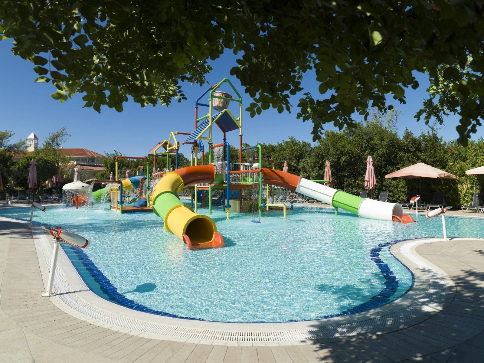 Детская аква-инфраструктура: для детей в отдельном мелководном бассейне рядом со взрослым аквапарком оборудован небольшой двухуровневый аквакомплекс с 4 горками (трубы, желоба). Для малышей в еще одном бассейне с песчаным дном есть мини-горки. В отеле работает детский клуб.