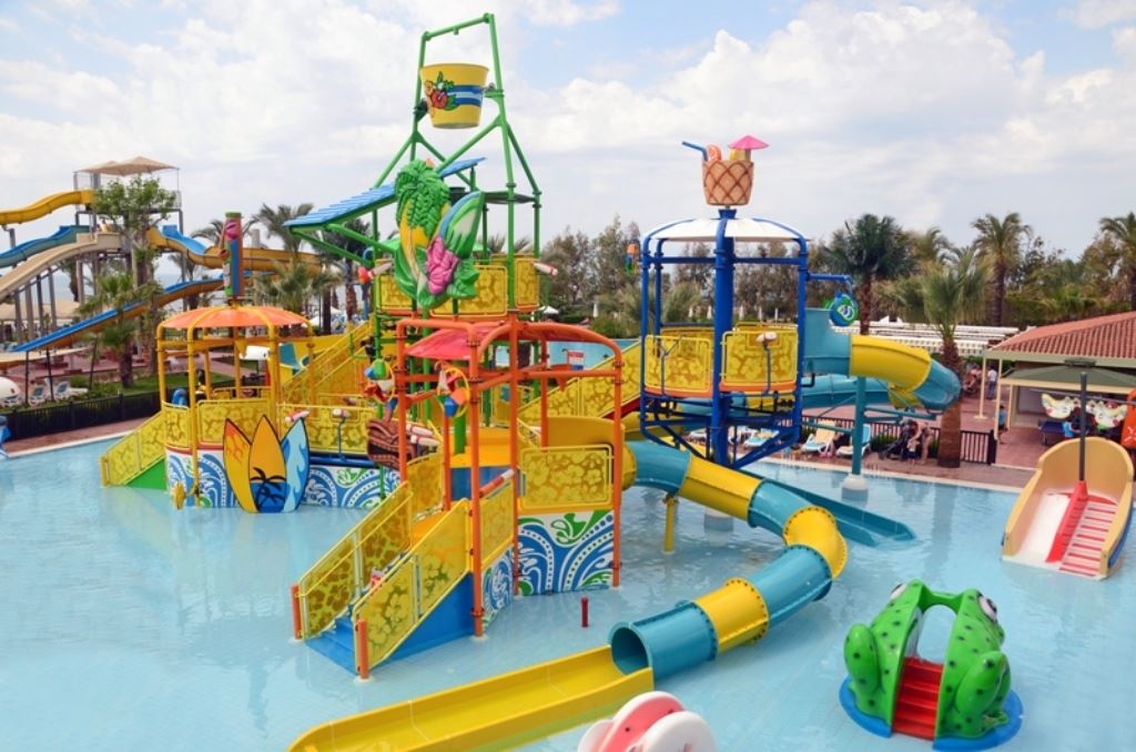 Для нашего обзора мы взяли те отели курортов Турции, где есть не просто водные горки или малышковый бассейн, а именно полноценный детский аквакомплекс для детей 5-14 лет с горками и трубами на территории (со своей отдельной зоной и отдельным бассейном).